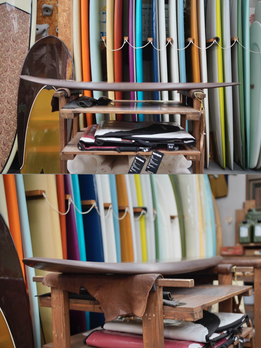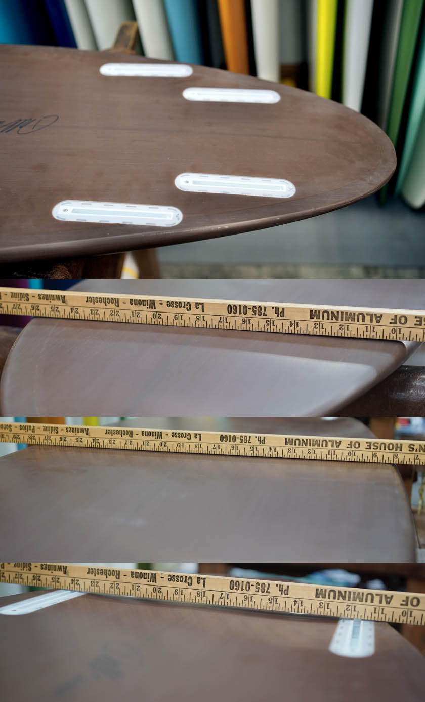 ストック、マッカラムのレベル4、メキシコ・メイドの5’10”PDXクワッドです。サンディエゴでコンピューターカットしたブランクスを、サーフボド工場で30年以上働いてきたメキシコの熟練職人のジョージ・ボイスとその奥様が二人で仕上げたものです。サンディエゴ製に比べ僅かにあらさが見受けられるかも知れっませんが、使用に問題のないささやかなものばかりでしょう。よりお求めやすい価格帯でマッカラムの気持ち良いドライブ&フローが満喫できる上に、ペソのマークが一味違う良い雰囲気も醸し出してくれております。フィンセットの付属はありません。