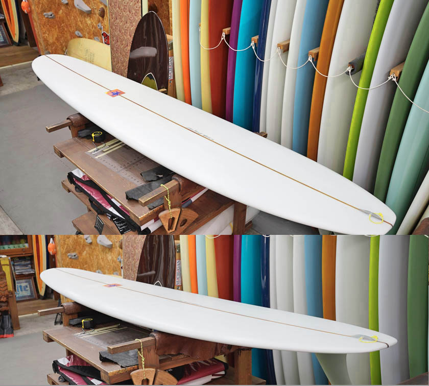 ニュー・エボリューションのユーズド・サーフボードは、ショートレングスからロングボードまで、個性豊かで充実したラインナップ。出来る限り分かりやすいコンディションの説明で、開業より20年以上日本各地の多くの皆様に販売を続けております。 あくまでもユーズドなので、コンディションについて気になる点がある場合は、お気軽にメールにてお問い合わせください。 尚、出来るだけお求めやすい金額でご提案させていただけるよう、ユーズドボードにつきましては現金特価とさせていただいております。カード決済ご希望の場合は、ご相談ください。 BMT Personal Log 9'6" * 23" * 3&1/4" Sanded finish, clear, red cedar stringer, glass leash loop, glass on single fin. ユーズド、ブラウン・マイクロウェーブ・テレビジョン(BMT)の9’6”パーソナル・ログです。アレックス・ノストのハンドシェイプしたいわゆるシグネチャーモデル・タイプで、軽量な仕上がりのアレックスの様な軽快でスタイリッシュなマニューバーをさせてくれるボードになっている様です。デッキにはまだそれほど多くない使用回数分のフットマークが画像程度、そのほかボトムのノーズ寄りに縦目にやや斜めの線の様な短い僅かな凹みが2本ほどとノーズに僅かに色焼けが見受けられるコンディションでしょう。(ウォータータイトな印象の表面上の極浅い傷だと思います)グラスループやグラスオンフィンなどこだわりの詰まった一本です。