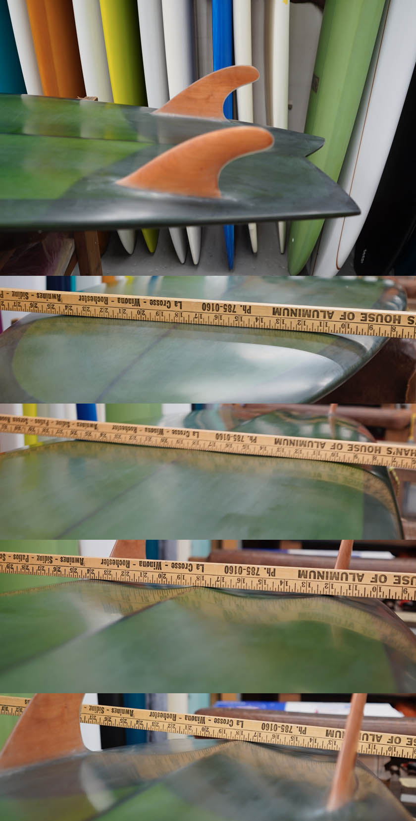 glass on wood twin fin.