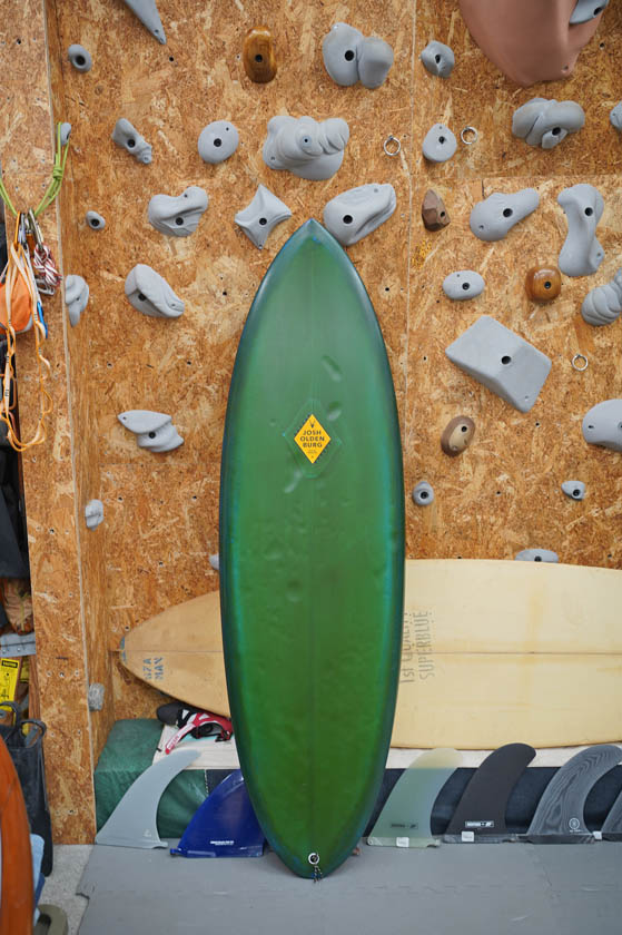 ユーズド、オルデンバーグの5’8”スピード・ディスクです。弊店で販売していたブランドで、未だ復活を待ち望む声があるオルデンバーグ。こちらはオルタナティブなデザインにショートボードに近いレール、深いコンケーブなどのエッセンスを詰め込んだパフォーマンス製も高い一本です。デッキには画像程度のフットマーク、ボトムに凹み、テールにマイナーなアタリ見受けられるコンディションでしょう。フィンセットの付属はありません。