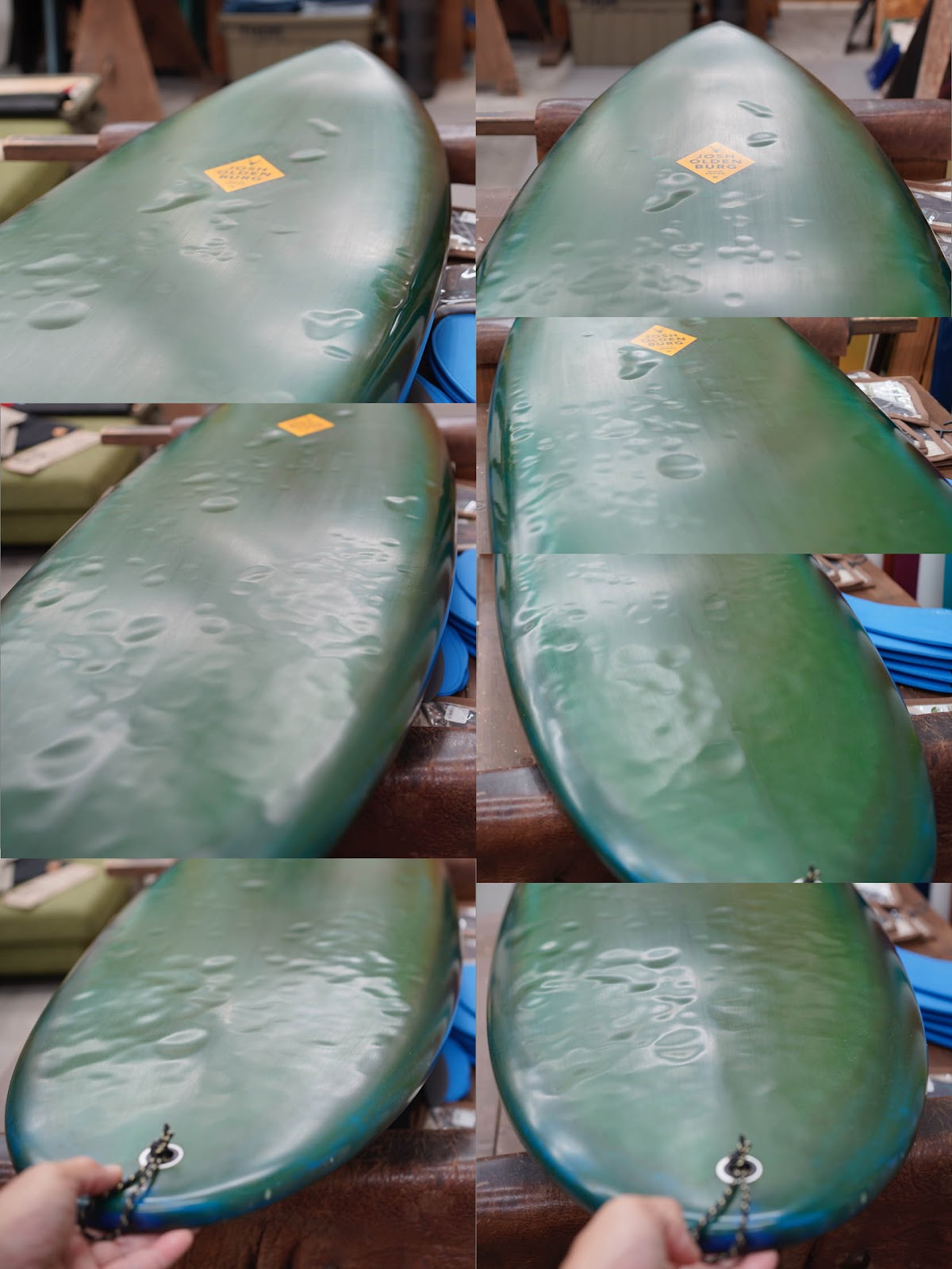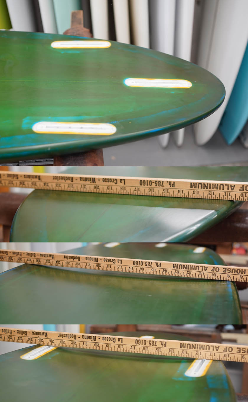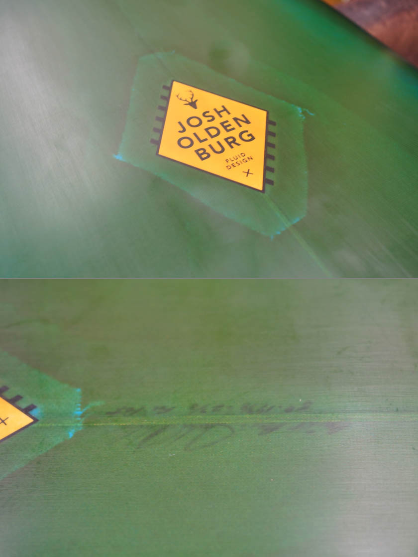 ニュー・エボリューションのユーズド・サーフボードは、ショートレングスからロングボードまで、個性豊かで充実したラインナップ。出来る限り分かりやすいコンディションの説明で、開業より20年以上日本各地の多くの皆様に販売を続けております。 あくまでもユーズドなので、コンディションについて気になる点がある場合は、お気軽にメールにてお問い合わせください。 尚、出来るだけお求めやすい金額でご提案させていただけるよう、ユーズドボードにつきましては現金特価とさせていただいております。カード決済ご希望の場合は、ご相談ください。 Oldenburg Speed Disk 5'8" *19&3/4" * 2&3/8" Wetsand finish, blue base yellow brown colored hotcoat both side, leash cup, future tri fin plug. (fin set not included) ユーズド、オルデンバーグの5’8”スピード・ディスクです。弊店で販売していたブランドで、未だ復活を待ち望む声があるオルデンバーグ。こちらはオルタナティブなデザインにショートボードに近いレール、深いコンケーブなどのエッセンスを詰め込んだパフォーマンス製も高い一本です。デッキには画像程度のフットマーク、ボトムに凹み、テールにマイナーなアタリ見受けられるコンディションでしょう。フィンセットの付属はありません。