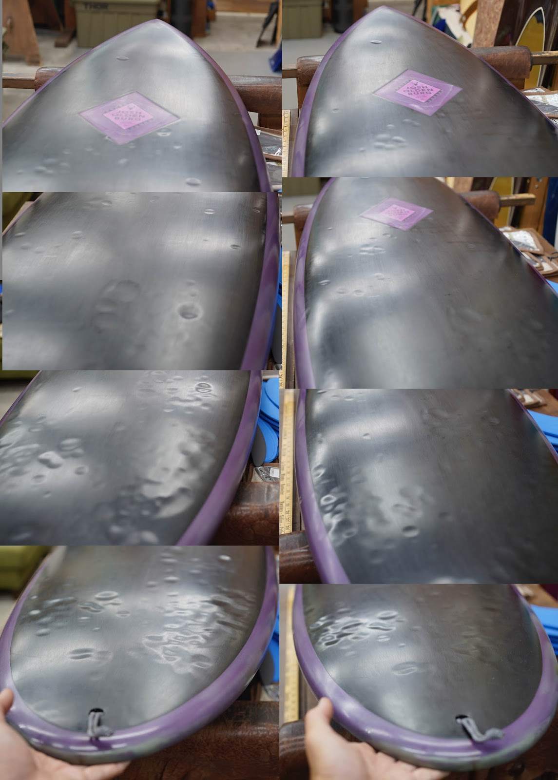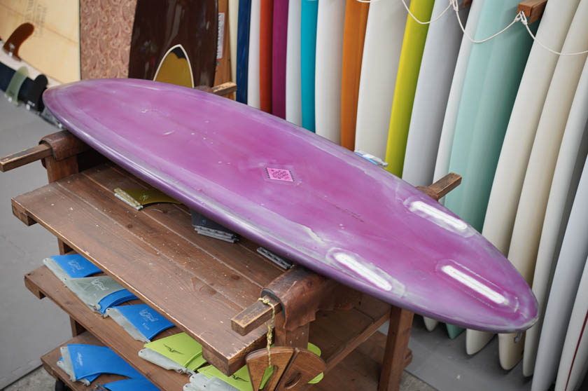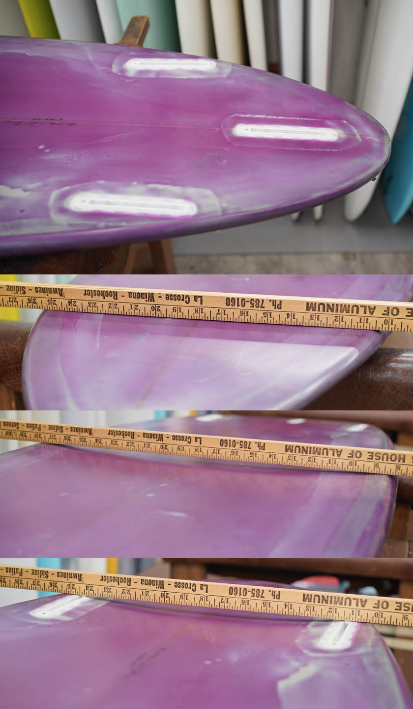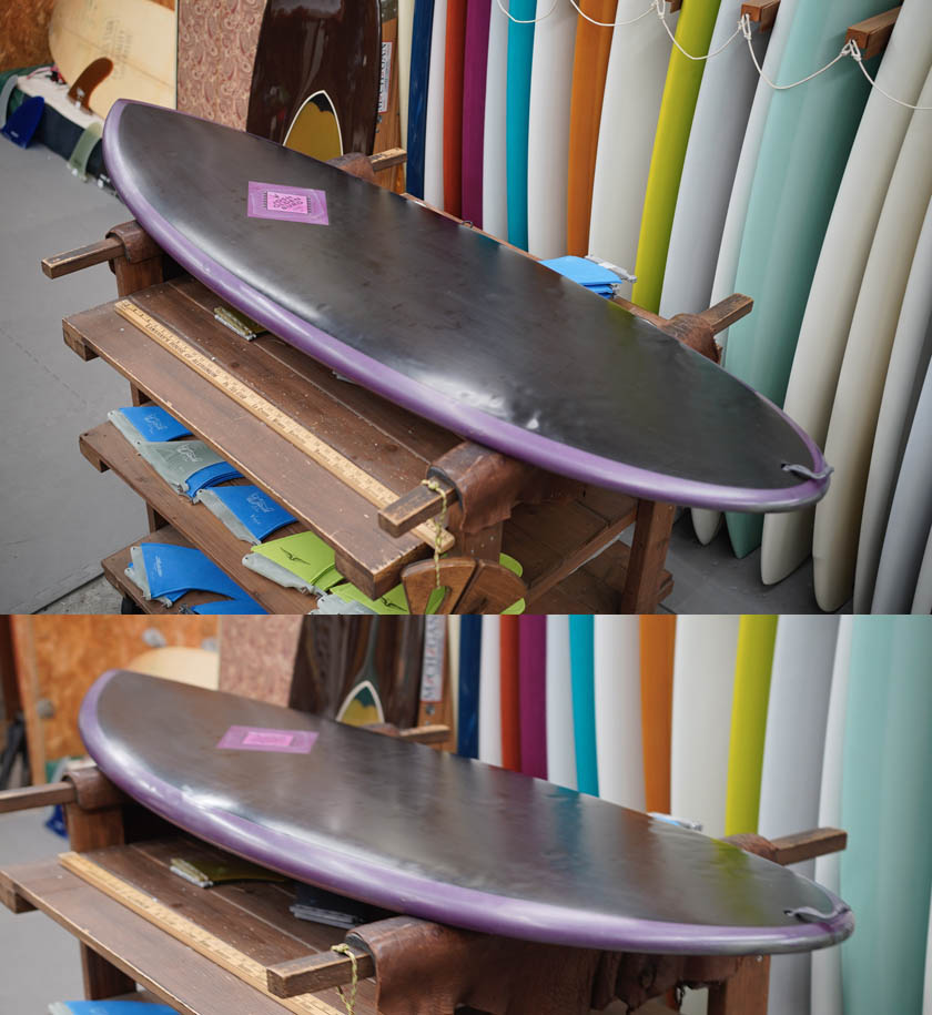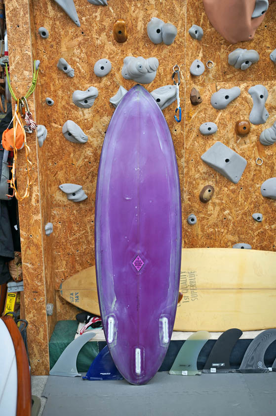 ニュー・エボリューションのユーズド・サーフボードは、ショートレングスからロングボードまで、個性豊かで充実したラインナップ。出来る限り分かりやすいコンディションの説明で、開業より20年以上日本各地の多くの皆様に販売を続けております。 あくまでもユーズドなので、コンディションについて気になる点がある場合は、お気軽にメールにてお問い合わせください。 尚、出来るだけお求めやすい金額でご提案させていただけるよう、ユーズドボードにつきましては現金特価とさせていただいております。カード決済ご希望の場合は、ご相談ください。 Oldenburg Speed Disk 6'0" * 20&1/2" * 2&1/2" Wetsand finish, clear base purple colored hot coat, black resin panel on the desk, leash cup, future tri fin plug. (fin set not included) ユーズド、オルデンバーグの6’0”スピード・ディスクです。弊店で販売していたブランドで、未だ復活を待ち望む声があるオルデンバーグ。こちらはオルタナティブなデザインにショートボードに近いレール、深いコンケーブなどのエッセンスを詰め込んだパフォーマンス製も高い一本です。デッキには画像程度のまだそれほど多くないフットマーク、ボトムに凹み、レールにマイナーな名あたりが幾つか見受けられるコンディションでしょう。フィンセットの付属はありません。