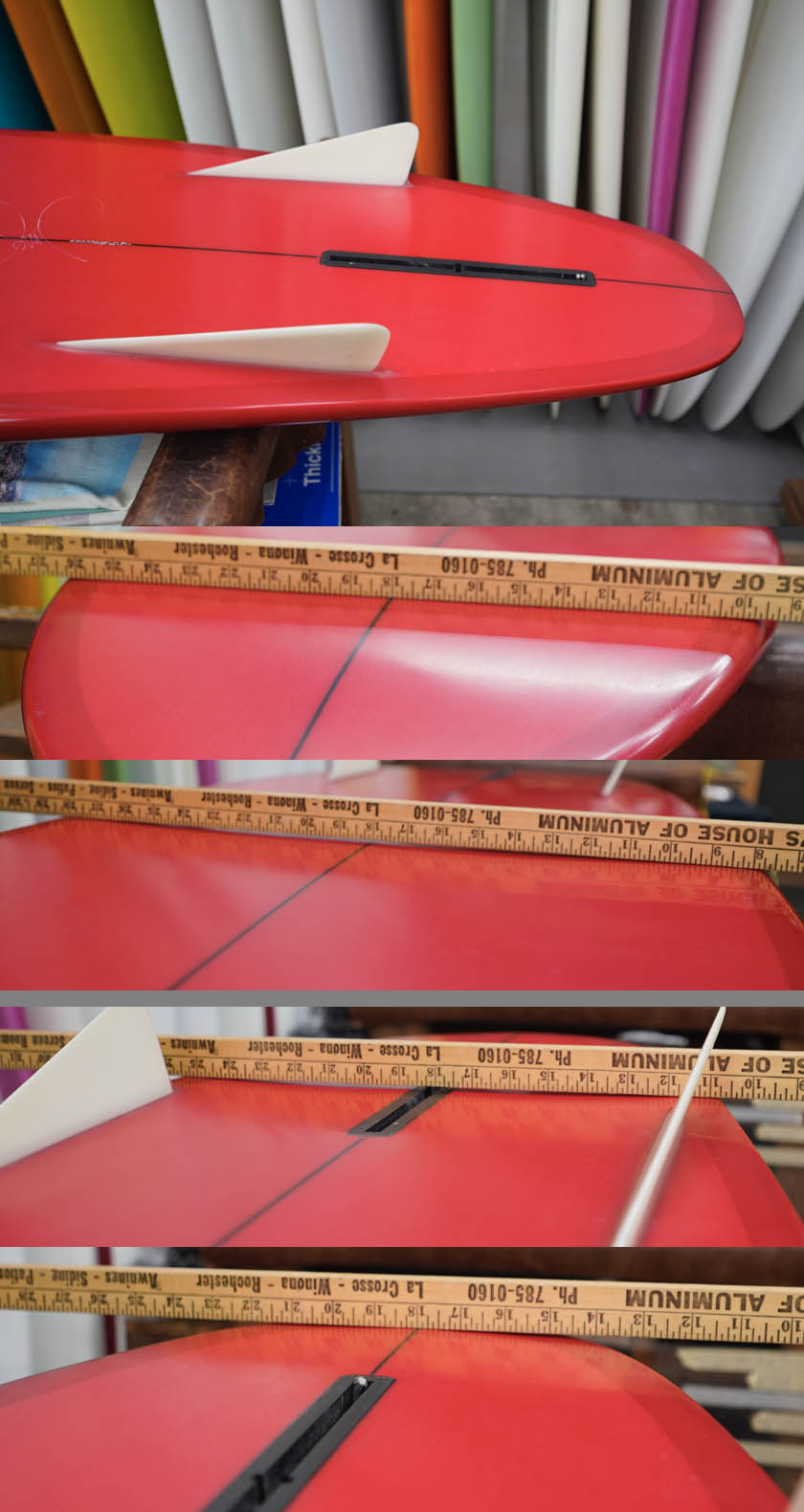 ユーズド、マッカラムの6’3”ボンザーです。少し長めのショートレングスなので、浮力によ鳥が欲しい方におすすめの一本。気持ち良いマッカラム・スタイルのドライブ&フローを3フィンボンザーで楽しめますね。デッキには画像程度のフットマーク、ボックス付け根に僅かなヒビ、片側のボトムレール寄りに表面上の擦り傷、それと両ボンザーフィンの前にプレッシャーによる数本のヒビが見受けられるコンディションでしょう。(ヒビはリペアー推奨です)
