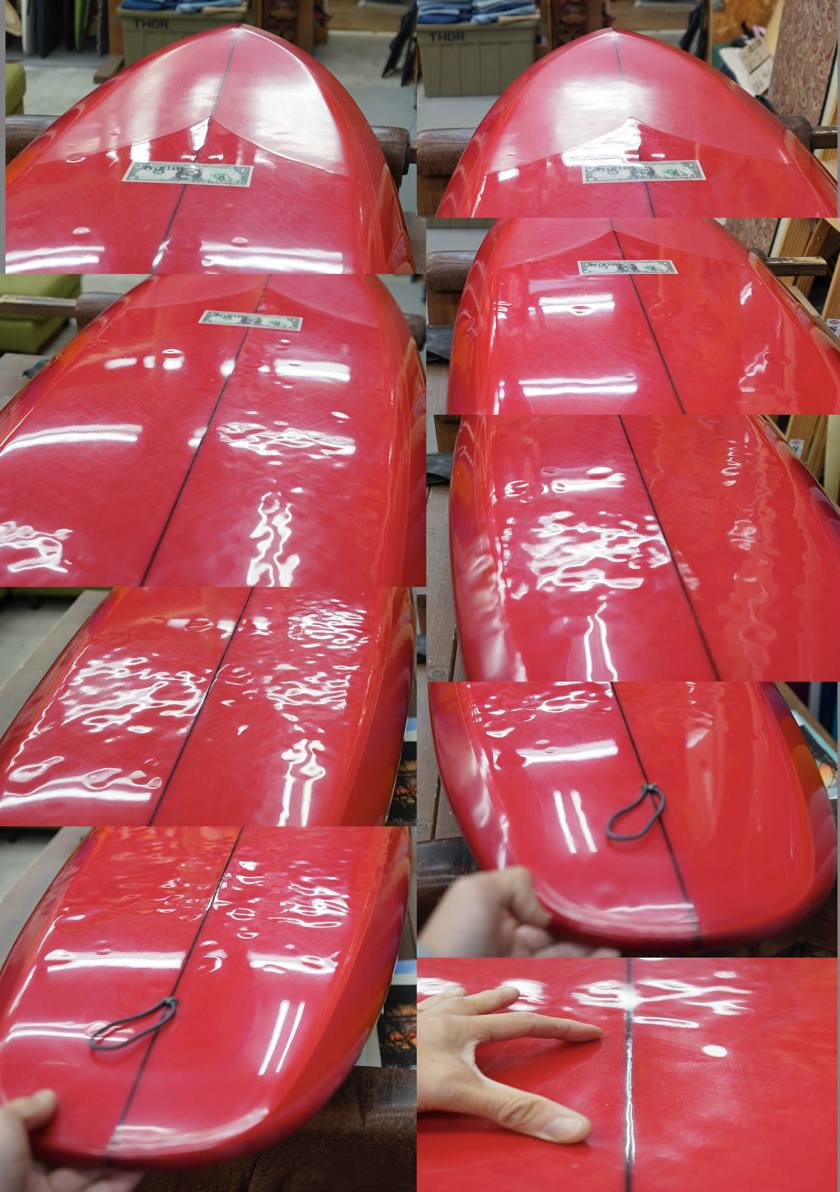 ニュー・エボリューションのユーズド・サーフボードは、ショートレングスからロングボードまで、個性豊かで充実したラインナップ。出来る限り分かりやすいコンディションの説明で、開業より20年以上日本各地の多くの皆様に販売を続けております。 あくまでもユーズドなので、コンディションについて気になる点がある場合は、お気軽にメールにてお問い合わせください。 尚、出来るだけお求めやすい金額でご提案させていただけるよう、ユーズドボードにつきましては現金特価とさせていただいております。カード決済ご希望の場合は、ご相談ください。 McCallum Bonzer 6'3" * 21&3/8" * 2&1/2" Wetsand & gloss, black wood stringer, glass on side bonzwer fin, leash hole, center box. (center fin not included) ユーズド、マッカラムの6’3”ボンザーです。少し長めのショートレングスなので、浮力によ鳥が欲しい方におすすめの一本。気持ち良いマッカラム・スタイルのドライブ&フローを3フィンボンザーで楽しめますね。デッキには画像程度のフットマーク、ボックス付け根に僅かなヒビ、片側のボトムレール寄りに表面上の擦り傷、それと両ボンザーフィンの前にプレッシャーによる数本のヒビが見受けられるコンディションでしょう。(ヒビはリペアー推奨です)