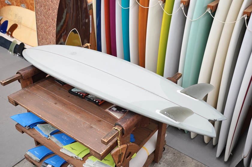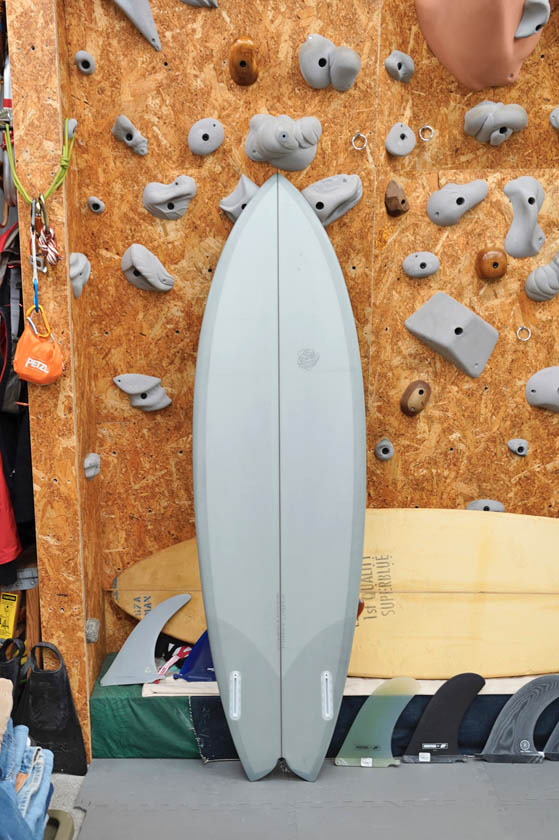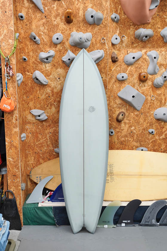 ニュー・エボリューションのユーズド・サーフボードは、ショートレングスからロングボードまで、個性豊かで充実したラインナップ。出来る限り分かりやすいコンディションの説明で、開業より20年以上日本各地の多くの皆様に販売を続けております。 あくまでもユーズドなので、コンディションについて気になる点がある場合は、お気軽にメールにてお問い合わせください。 尚、出来るだけお求めやすい金額でご提案させていただけるよう、ユーズドボードにつきましては現金特価とさせていただいております。カード決済ご希望の場合は、ご相談ください。 Toy Boat Fish 6'0" * 19&7/8" 2&1/2" Wetsand & gloss, light grey tint top & bottom, dark wood stringer, fin patch, glass leash loop, future twin plug. (fin set included) ユーズド、トイ・ボートのツイン・フィッシュです。トレバーゴードンのシェイプするボードで、レールのボトム側に僅かにベベルを取り入れたナローなフィッシュテールのパフォーマンス性も高そうな一本でしょう。まだ使用買う数が1回なので、フットマークは数個見受けられるだけで、その他まだ新品に近いコンディションと言えると思います。画像のフィンセットが付属いたします。
