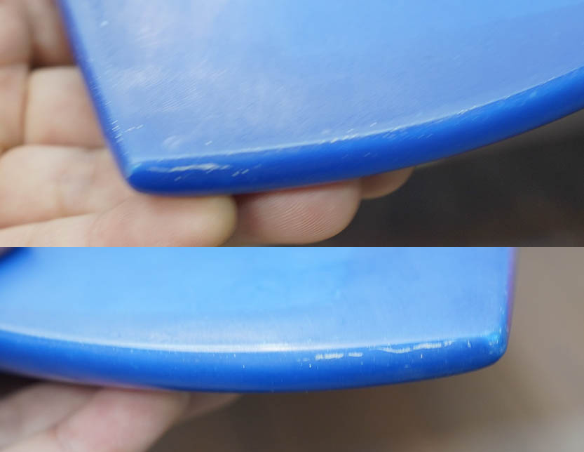 Wetsand & gloss, blue tint top & bottom, dark wood stringer,
